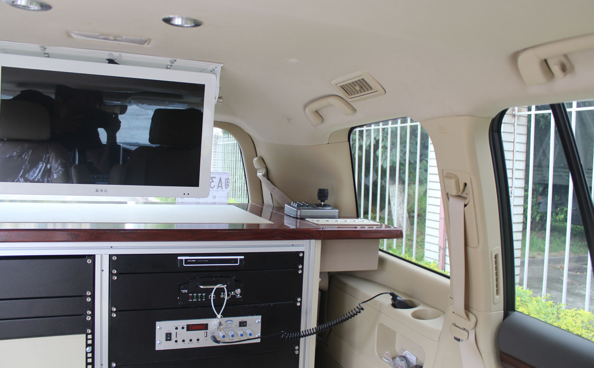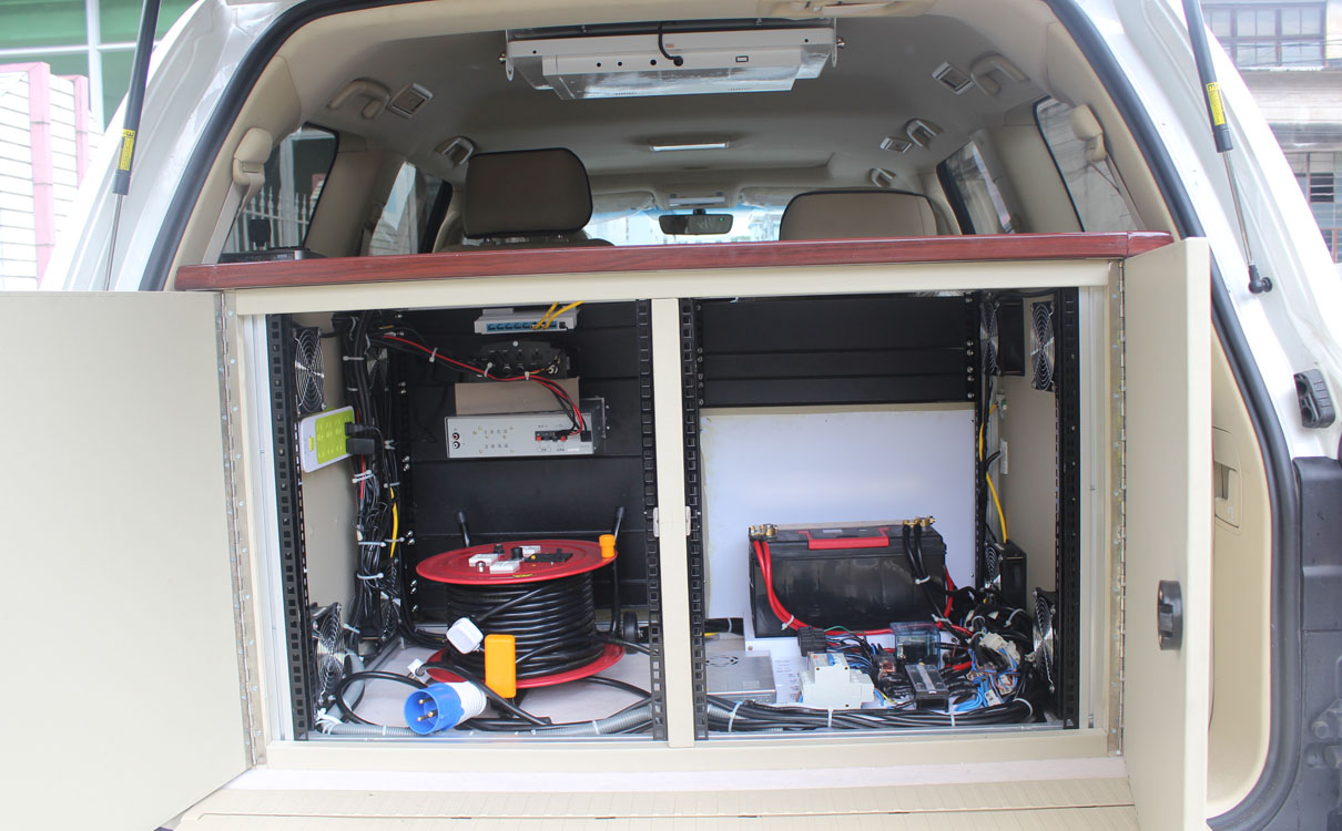 载车平台分系统是通过车辆改装,使车辆能够实现设备装载、系统运输,并为人员工作提供相应空间。车辆选型系统选用普拉多3.5L TX作为载车底盘,其技术参数及外观照片如下所示。车辆技术参数表外形尺4840mm×1885mm×1890mm轴距2790mm前悬挂系统 双叉臂式独立悬架后悬挂系统 四连杆式非独立悬架大功率 206kw大功率转速 6000rpm大扭矩 365N.m排量 3456cc气缸数 六缸排放标准 国V变速箱类型 6挡手自一体车体改装后符合交通管理部门有关要求。能保证车体系统在一般城市道路和公路正常行驶及低速越野行驶,轴荷分配及左右配重应合理,满载时不超过原车总载重量,改装不破坏原车结构,车体改造完成后进行整车性能测试,如行驶测试、重心平衡测试、淋雨测试等,并提交测试报告,汽车制动性能、噪声、排放性能满足一般国际通信车辆标准,具有较好的稳定性、平顺性、舒适性等性能设计指标。3.1.2.1 骨架加强由于在车辆顶部需要安装卫星天线等若干设备,需要对车顶及侧壁的骨架进行加强。侧壁骨架加强采用40×2 的Q235方钢组焊桁架结构。通过加强桁架结构,将设备的重量及由振动、风压等引起的附加载荷传到车身和底盘各承力构件上,保证设备安装对车体刚度和强度的要求。3.1.2.2 预埋件加强设备机柜、设备托盘等与在车厢底部连接的设备均预埋加强钢板,保证连接强度。