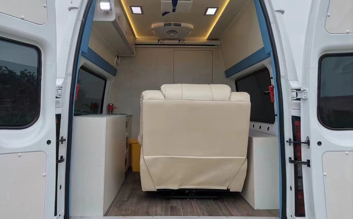 该车设置分为两个区域、一个是等候区、一个是咨询区;采用隔音效果;外面的人听不到咨询区里面的谈话;为了充分的让受检者更加舒适、我们在咨询区采用了宽大而舒适的按摩椅;彻底放松人的心态;全车采用暖色灯设计;让人感受到在家里的温煦;